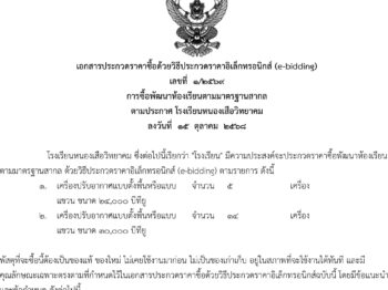 เอกสารประกวดราคาซื้อด้วยวิธีประกวดราคาอิเล็กทรอนิกส์ (e-bidding) การซื้อพัฒนาห้องเรียนตามมาตรฐานสากล ตามประกาศ โรงเรียนหนองเสือวิทยาคม ลงวันที่ ๑๕ ตุลาคม ๒๕๖๘ 15 ตุลาคม 202516 ตุลาคม 2025จักรกฤษณ์ ทุยบึงฉิมจัดซื้อจัดจ้าง