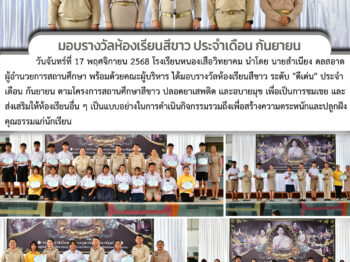 โรงเรียนหนองเสือวิทยาคม จัดพิธีมอบรางวัลห้องเรียนสีขาว ดีเด่น ประจำเดือนกันยายน ตามโครงการสถานศึกษาสีขาว ณ โดมเมตตาวิหารคุณ 17 พฤศจิกายน 202518 พฤศจิกายน 2025จักรกฤษณ์ ทุยบึงฉิมข่าวสาร