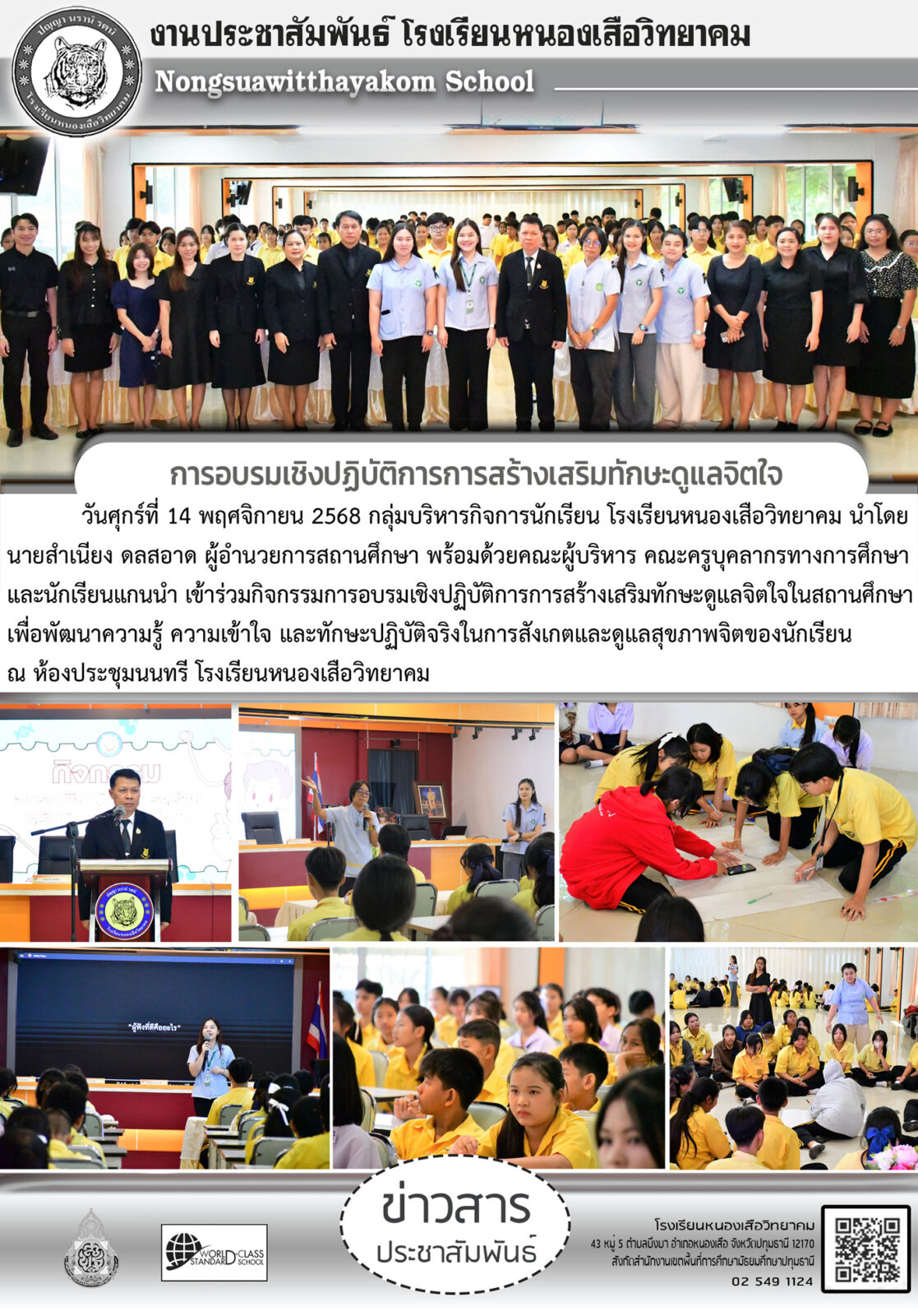 โรงเรียนหนองเสือวิทยาคม จัดการอบรมเชิงปฏิบัติการการสร้างเสริมทักษะดูแลจิตใจในสถานศึกษา ให้กับนักเรียนแกนนำ ณ ห้องประชุมนนทรี 14 พฤศจิกายน 202518 พฤศจิกายน 2025จักรกฤษณ์ ทุยบึงฉิมข่าวสาร FacebookTwitterLine