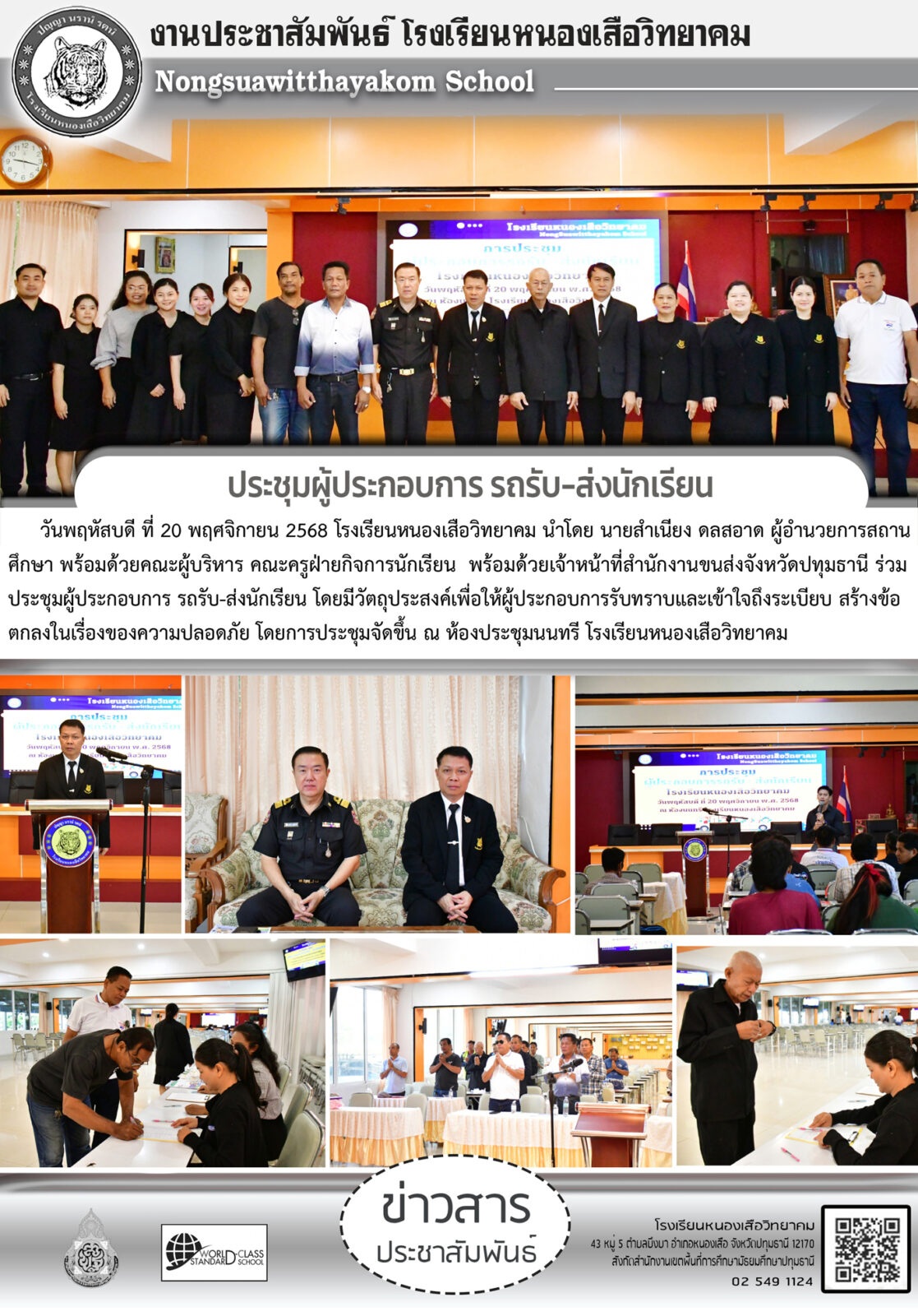 โรงเรียนหนองเสือวิทยาคม จัดประชุมผู้ประกอบการ รถรับ-ส่งนักเรียน ณ ห้องประชุมนนทรี 20 พฤศจิกายน 20253 ธันวาคม 2025จักรกฤษณ์ ทุยบึงฉิมข่าวสาร FacebookTwitterLine
