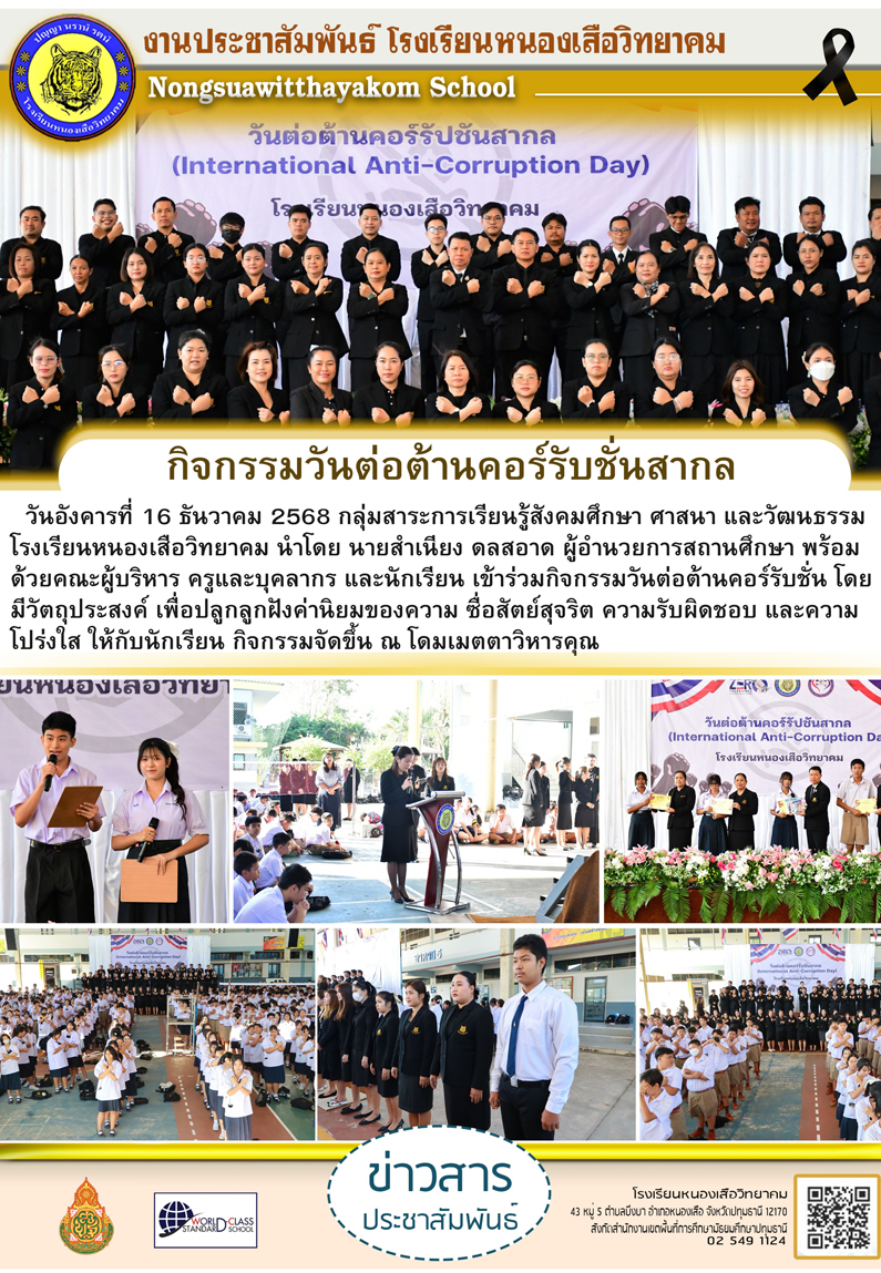โรงเรียนหนองเสือวิทยาคม จัดกิจกรรมวันต่อต้านคอร์รับชั่นสากล ณ โดมเมตตาวิหารคุณ 16 ธันวาคม 202517 ธันวาคม 2025จักรกฤษณ์ ทุยบึงฉิมข่าวสาร FacebookTwitterLine