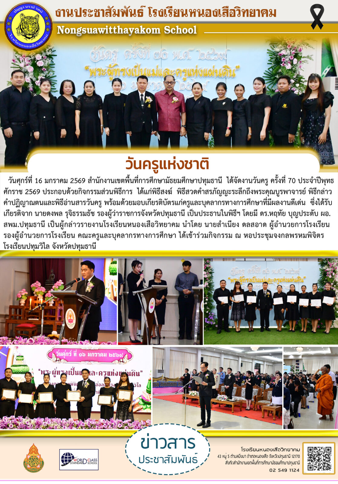 คณะผู้บริหาร และคณะครู โรงเรียนหนองเสือวิทยาคม ร่วมกิจกรรมวันครู ของสำนักงานเขตพื้นที่การศึกษามัธยมศึกษาปทุมธานี ณ หอประชุมจงกลพรหมพิจิตร โรงเรียนปทุมวิไล จังหวัดปทุมธานี 16 มกราคม 202620 มกราคม 2026จักรกฤษณ์ ทุยบึงฉิมข่าวสาร FacebookTwitterLine