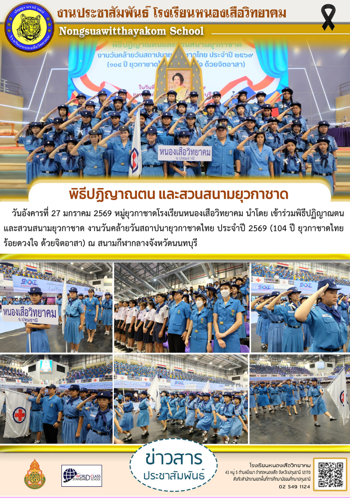 โรงเรียนหนองเสือวิทยาคม เข้าร่วมพิธีปฏิญาณตน และสวนสนามยุวกาชาด ณ สนามกีฬากลางจังหวัดนนทบุรี 27 มกราคม 202630 มกราคม 2026จักรกฤษณ์ ทุยบึงฉิมข่าวสาร FacebookTwitterLine